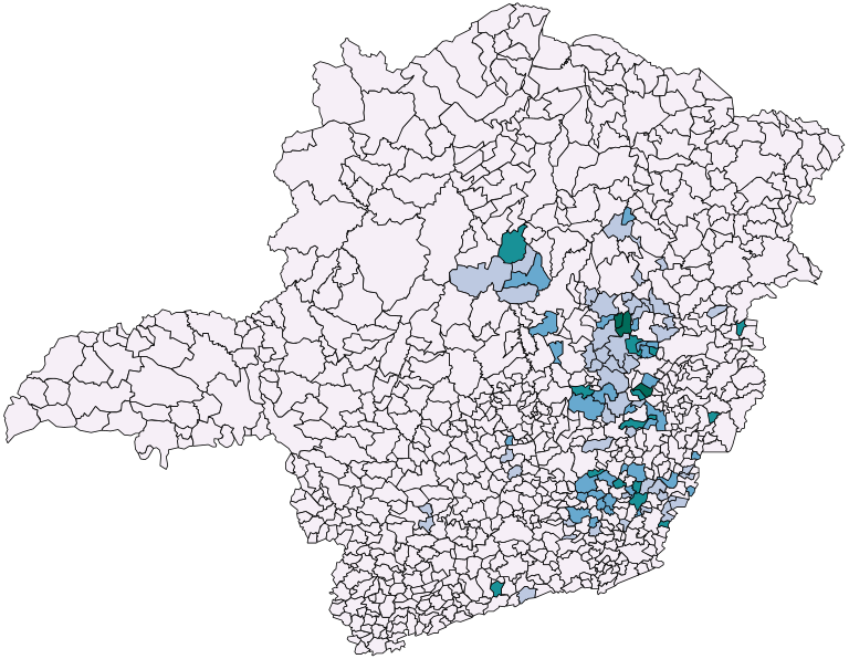 Legenda dos municípios de MG com base no percentual de UCs municipais em relação a área do município
