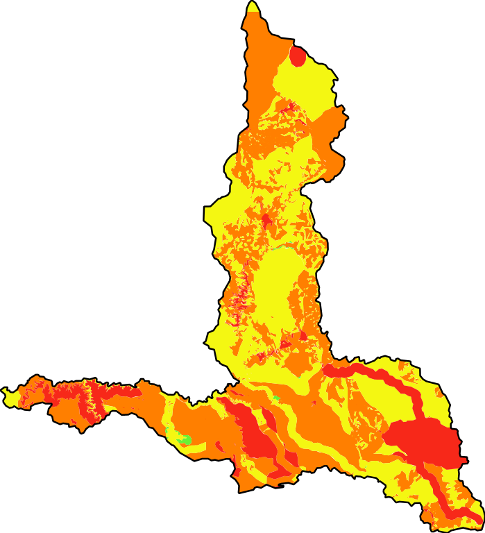 Grau de fragilidade socioambiental da bacia do rio Suaçuí Grande para o cenário atual, gerado a partir de análise multicritério. A camada contempla a Avaliação Ambiental Integrada (AAI) da bacia, elaborada em 2022