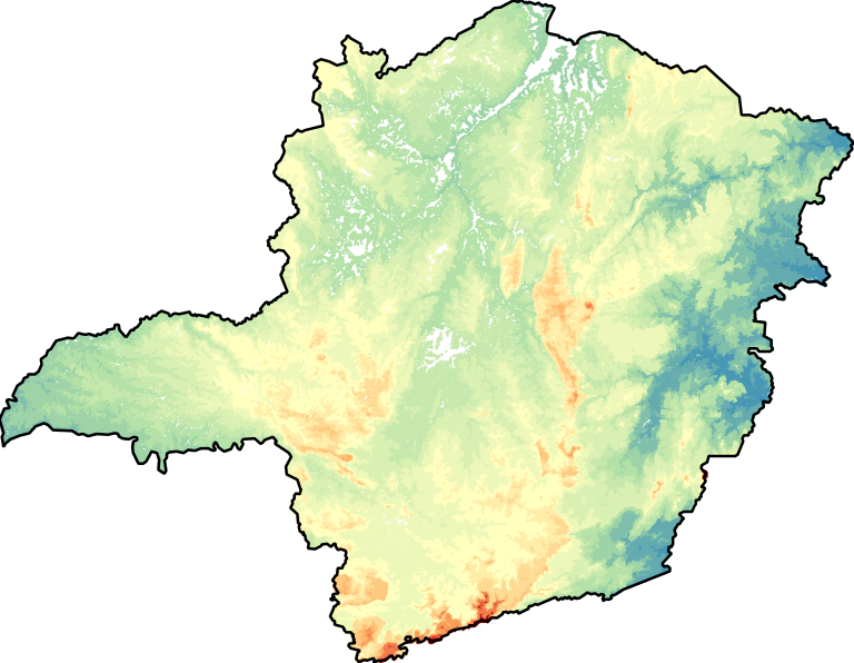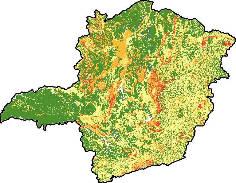 Representação da cobertura vegetal do Estado de Minas Gerais, categorizada por fitofisionomias. O mapeamento é fruto do Inventário Florestal e dos Mapeamentos da Flora Nativa e dos Reflorestamentos de Minas Gerais, elaborados pela Universidade Federal de Lavras (UFLA) entre 2003 e 2008.