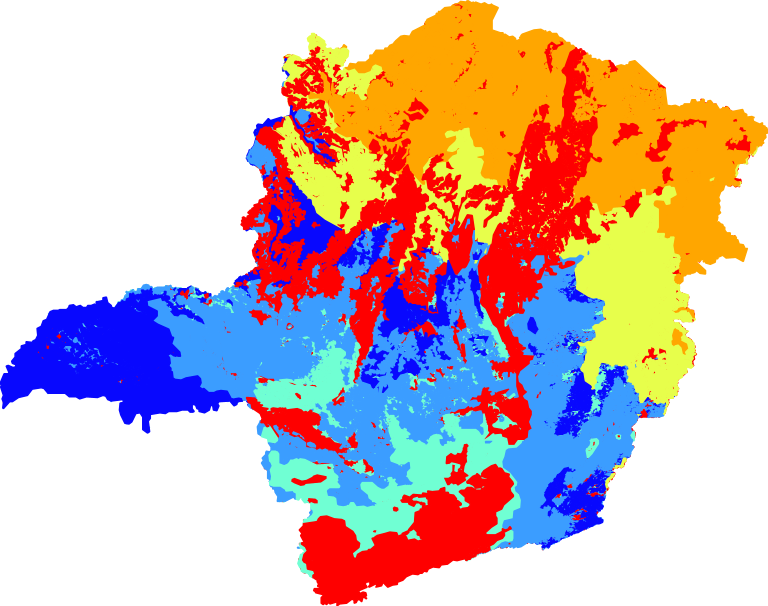 Mapa de aptidão edafoclimática para a cultura de eucalipto, resultante de análise ponderada dos índices de umidade de Thorntwaite dos mapeamentos de solos e disponibilidade de água superficial. Integra os cenários exploratórios do Zoneamento Ecológico-Econômico de Minas Gerais, elaborado pela Universidade Federal de Lavras (UFLA), em convênio com o Sisema, entre 2005 e 2008.