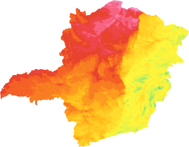 Camada matricial com a média de longo prazo da irradiação solar normal global sobre a superfície do território de MG, conforme mapeamento do Atlas Solar Global (Global Solar Atlas).