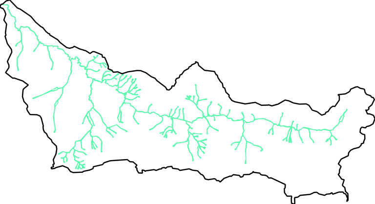 Delimitação da sub-bacia hidrográfica do ribeirão do Machadinho, extraída a partir das ottobacias do rio Grande, disponibilizadas pelo Igam na IDE-Sisema.