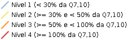Legenda dos níveis de pressão hídrica dos trechos hidrográficos da sub-bacia do ribeirão das Pedras, Córregos do Feijão e da Cruz