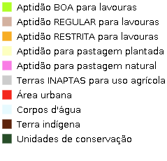 Legenda dos níveis de aptidão agrícola das terras em MG