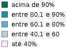 Legenda dos municípios de MG com base no percentual de atendimento de água à população urbana