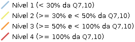 - O Índice de Demanda Hídrica Superficial à Montante da sub-bacia do ribeirão do Machadinho foi obtido calculando-se, em relação à demanda de cada trecho da sub-bacia, o percentual de comprometimento da Q7,10 e classificando-os em níveis de 1 a 4. Para tanto, foi usada a camada de rede de drenagem, no formato shapefile, “01_02_hidro_rib_machadinho”. Aos trechos de drenagem desta camada foram associadas as demandas hídricas cadastradas na planilha, no formato .xls, “01_usuarios_bacia_hidrografica_ribeirao_machadinho”. A camada shapefile da rede de drenagem original foi fornecida pelo IDE-SISEMA e a planilha com o cadastro de usuários foi fornecida pelo Igam.