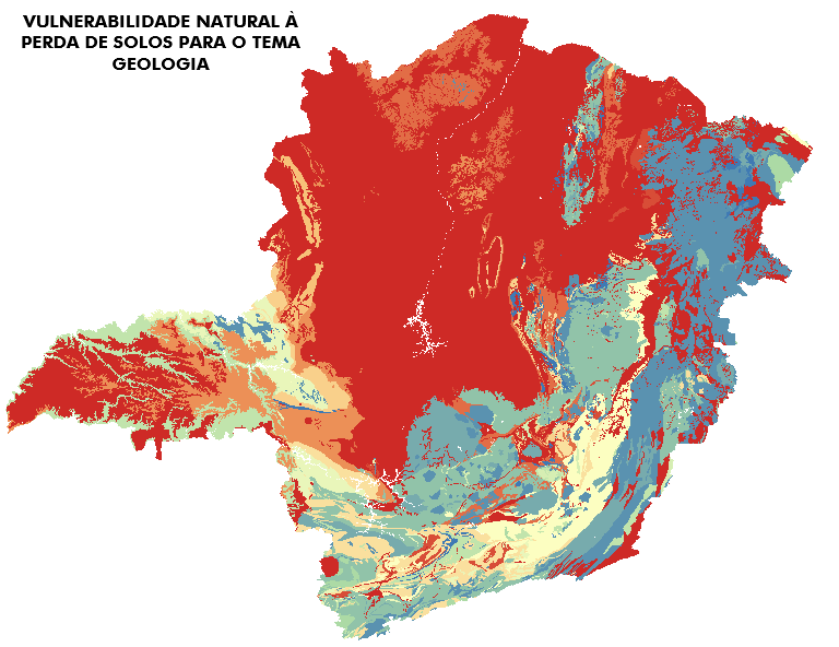 Visão geral da vulnerabilidade natural à perda de solos para o tema geologia em MG