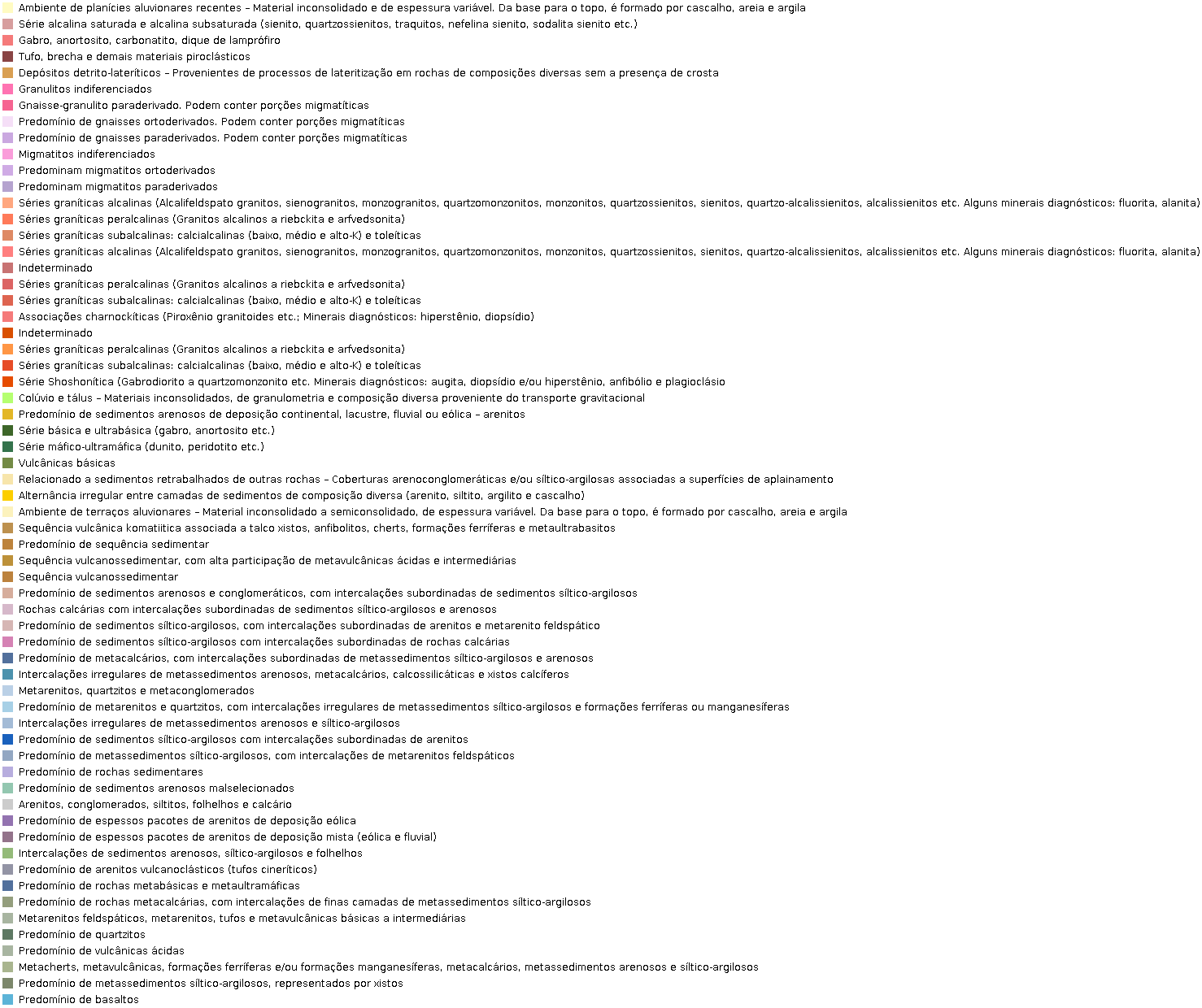 Em alguns casos foram agrupadas, em um mesmo domínio, unidades estratigráficas com idades diferentes, desde que a elas se aplicasse um conjunto de critérios classificatórios, como: posicionamento tectônico, nível crustal, classe da rocha (ígnea, sedimentar ou metamórfica), grau de coesão, textura, composição, tipos e graus de deformação, expressividade do corpo rochoso, tipos de metamorfismo, expressão geomorfológica ou litotipos especiais. Se, por um lado, agruparam-se, por exemplo, quartzitos friáveis e arenitos friáveis, por outro foram separadas formações sedimentares muito semelhantes em sua composição, estrutura e textura, quando a geometria do corpo rochoso apontava no sentido da importância em distinguir uma situação de extensa cobertura de uma situação de pacote restrito, limitado em riftes.