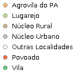 Conjunto de pontos representativos de aglomerados permanentes de habitantes identificados no território nacional. Esta camada integra as categorias: Vilas (sedes distritais), Núcleos Urbanos, Povoados, Lugarejos, Núcleos Rurais, Agrovilas de Projetos de Assentamento e Outras Localidades (aglomerações com 10 a 49 domicílios distanciados em até 50 metros)