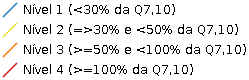 Para a análise de IDHS a Montante e Jusante, todos os trechos que possuem níveis mais críticos a sua jusante automaticamente herdam este nível, resultando em um mapa o qual apresenta a demanda hídrica como um todo na sub-bacia. O IDHS a montante e jusante de cada trecho deverá ser considerado o nível mais restritivo encontrado em trecho a jusante no qual a água do trecho em análise flui. Desta maneira, uma sub-bacia a qual tem o nível crítico no seu trecho de foz (o mais a jusante), automaticamente se encontra toda em estado crítico, uma vez que a vazão dos trechos a montante não suporta suficientemente a regularização da vazão natural do curso d’água (quando comparada à Q7,10).