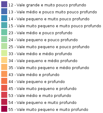 Legenda das classes de intensidade de dissecação do relevo em MG