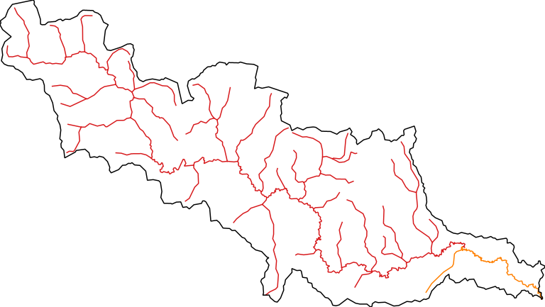 Ottotrechos de drenagem da sub-bacia do Córrego Rico, classificados quanto ao nível de demanda hídrica superficial a montante e a jusante de cada trecho, resultante da razão entre o coeficiente de demanda hídrica total da sub-bacia e o valor de referência da Q7,10. O mapeamento integra o Zoneamento Ambiental Produtivo (ZAP) da sub-bacia, elaborado em 2022