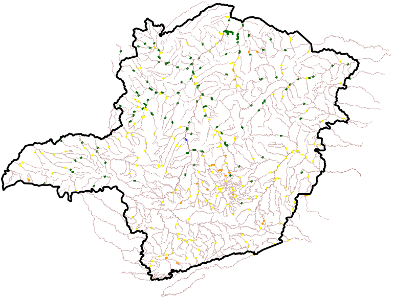 Atendendo a determinação do IGAM com a instituição da base hidrográfica ottocodificada/IGAM/2021, como fonte oficial para os produtos, dados espaciais e sistemas elaborados e/ou consumidos pelo IGAM, referentes à gestão de recursos hídricos. Atualmente a rede básica de monitoramento de qualidade de águas superficiais (macrorede) conta com 657 estações de amostragem distribuídas nas bacias hidrográficas dos rios São Francisco, Grande, Doce, Paranaíba, Paraíba do Sul, Mucuri, Jequitinhonha, Pardo, Buranhém, Itapemirim, tabapoana, Itanhém, Itaúnas, Jucuruçu, Peruípe, São Mateus e Piracicaba/Jaguari. Desde 2012, também é operada a rede de biomonitoramento com macroivertebrados bentônicos na bacia do rio das Velhas. Foram atualizados os produtos, dados espaciais e sistemas em utilização e/ou vigentes, baseado na plataforma vetorial geoespacial representando a localização pontual dos trechos hidrográficos de monitoramento da qualidade da água em Minas Gerais. A coluna “IQA 2021” da tabela de atributos representa os resultados do monitoramento da qualidade da água considerando a respectiva área de drenagem estabelecida pela Ottobacia “IGAM2021” e seu respectivo ano de avaliação. Por fim, a base possibilita o acesso público das principais informações referentes aos dados técnicos, a saber: cobacia, cocursodag, nome especifico, dominialidade dentre outros Outras vantagens também podem ser observadas, tais como: I. Possibilita integrar os diversos planos de informação a respeito dos usos e da disponibilidade hídrica dos cursos d'água, associando dados tabulares aos elementos espaciais, preservando a consistência hidrológica das informações. II. Possibilita consultar trechos a montante e a jusante de um determinado ponto de interesse, por meio de consulta tabular. III. Funciona como uma base de interoperabilidade entre as instituições responsáveis pela gestão dos recursos hídricos, possibilitando a integração a partir de um mesmo critério e referência geográfica. IV. A base suporta diversos modelos e sistemas, tais como modelos de chuva-vazão e os subsistemas do SNIRH.