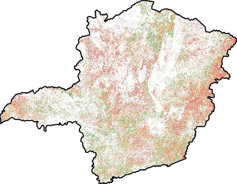 Condição e vigor das áreas de pastagem em Minas Gerais, baseada na série histórica do projeto Mapbiomas, em sua coleção 9, contemplando o período entre 2000 e 2023. O projeto MapBiomas advém da atuação intersetorial entre especialistas em sensoriamento remoto, com o objetivo de produzir uma série histórica contínua com a evolução da cobertura e uso da terra do território brasileiro, com a utilização de inteligência artificial, que realiza processos de análise, pixel a pixel, de imagens provenientes da constelação de sensores Landsat, da Agência Espacial Norte-Americana (NASA), com resolução espacial de 30 metros. Toda a metodologia do mapeamento é realizada por meio do software Google Earth Engine (GEE), que, devido a sua condição de processamento em nuvem, permite robustez e capacidade ampliada de realização. O produto da coleção disponibilizada, de vigor da pastagem, contempla 24 camadas, uma para cada ano da extensão temporal, entre 2000 e 2023. Todos os dados encontram-se em formato matricial (raster), obtidos para o recorte territorial de Minas Gerais por meio do toolkit de processamento disponível em ambiente Google Earth Engine (GEE).