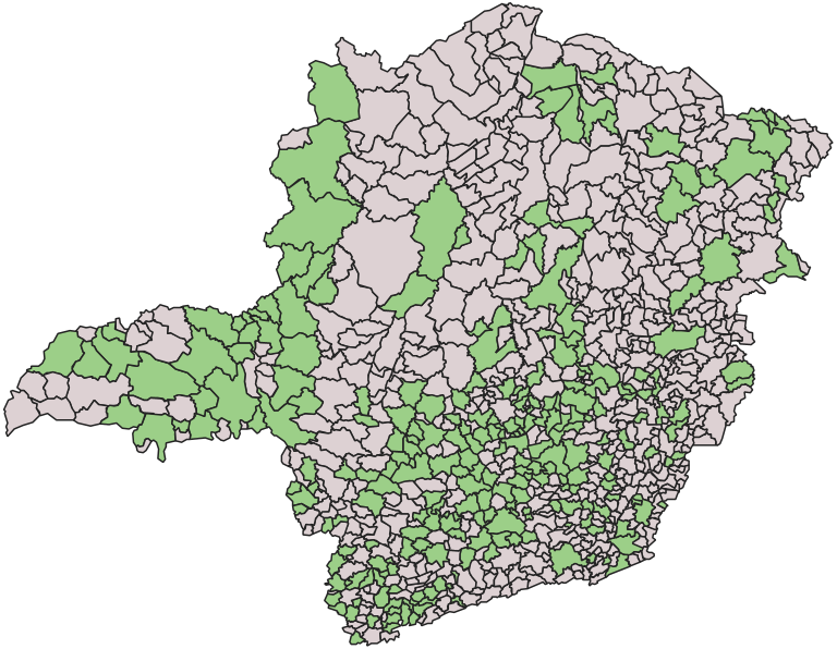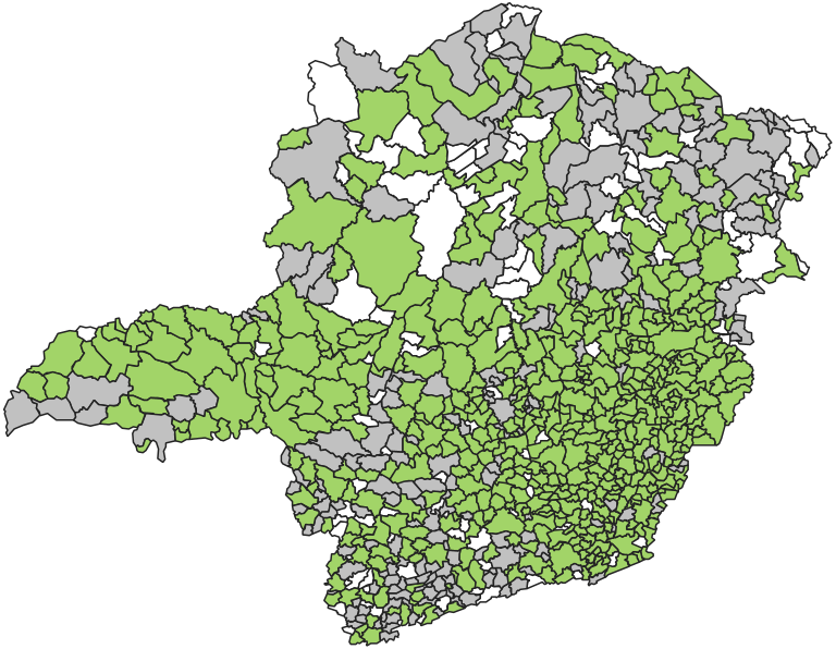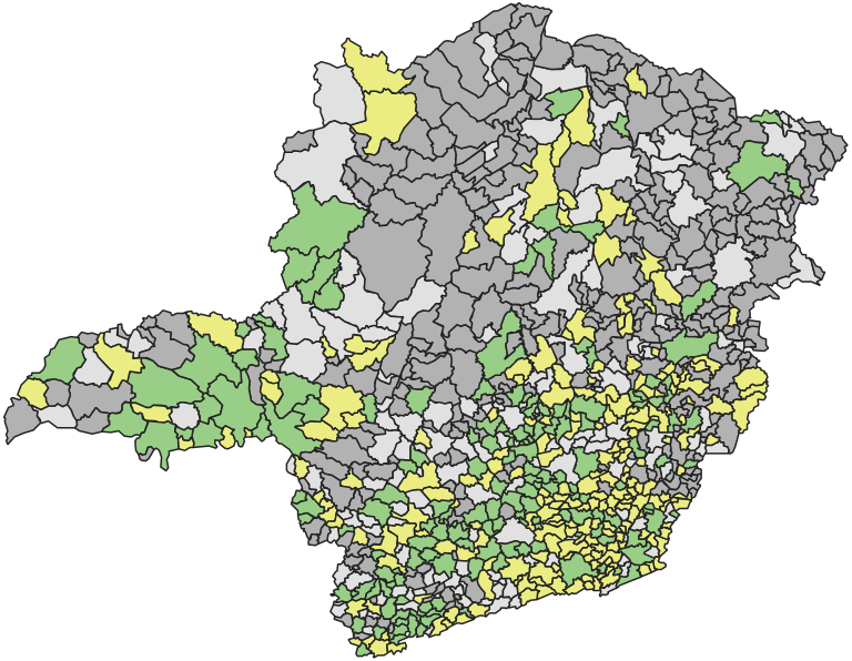 Representação vetorial dos municípios de MG, classificados com base na relação dos prestadores de serviço de coleta e tratamento de esgoto por município, analisados e disponíveis no Panorama de Abastecimento de Água e Esgotamento Sanitário 2023 elaborado pela Semad