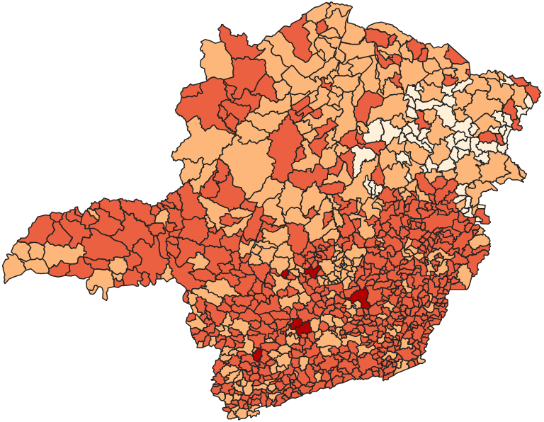 Classificação dos municípios de MG quanto ao percentual da população urbana atendida por abastecimento de água. O dado compõe os indicadores base do Índice de Desempenho Ambiental Municipal (Idam), mais especificamente no eixo Execução Ambiental