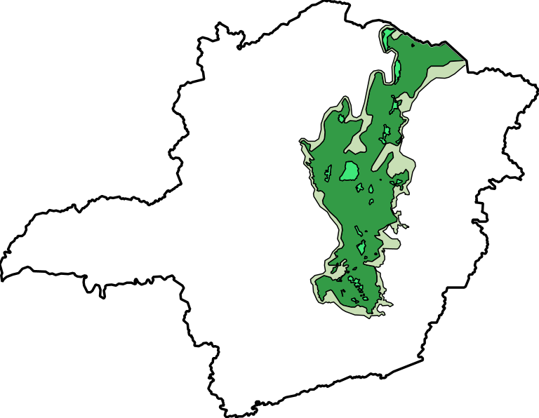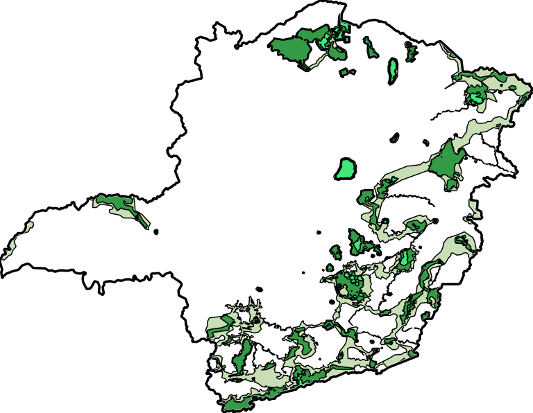 Zoneamento e limites da Reserva da Biosfera da Mata Atlântica (RBMA) em Minas Gerais. A RBMA foi instituída pela ação conjunta entre o Ministério do Meio Ambiente (MMA) e conselho nacional, sendo reconhecida pela UNESCO em 1991 através do programa "O Homem e a Biosfera" (MAB, em inglês), com revisão e atualizações consistidas por seu Conselho Nacional (CN-RBMA) entre 2008 e 2018.