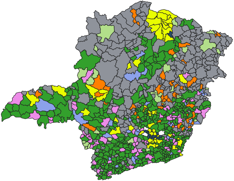 Representação dos municípios de MG, categorizados pela existência de Plano Municipal de Gestão Integrada de Resíduos Sólidos (PMGIRS) instituído, conforme dados divulgados pelo Panorama Resíduos Sólidos Urbanos 2021 da Semad, ano-base 2020. O dado compõe os indicadores base do Índice de Desempenho Ambiental Municipal (Idam) edição 2022, mais especificamente no eixo Planejamento e Estrutura Ambiental.