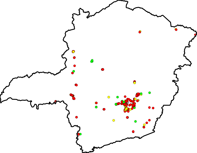 Consiste na representação dos municípios abaixo ou acima da média aritmética de valores do Idam Global em 2022 (0,455), considerando os resultados obtidos para os municípios de Minas Gerais. O valor da média é resultante da somatória dos índices obtidos no Idam Global dos 853 municípios do Estado, dividido pelo número de municípios mineiros.