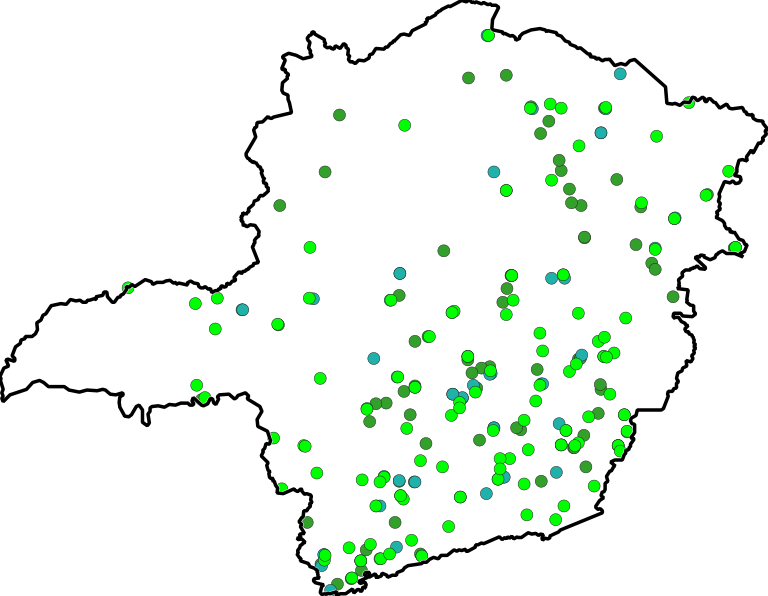 Representação dos municípios do Estado de Minas Gerais que firmaram Termo de Cooperação Técnica (TCT) com a Semad, para execução do programa "Jovens Mineiros Sustentáveis" em escolas das respectivas redes básicas de ensino municipais. O Programa Jovens Mineiros Sustentáveis é desenvolvido pela Semad, por meio da sua Diretoria de Educação Ambiental e Relações Institucionais – Deari, em parceria com prefeituras municipais, e consiste em um conjunto de atividades de educação ambiental e humanitária, que tem como estratégia geral capacitar educadores, por meio da disponibilização de curso de educação à distância – EaD de educação ambiental, além de formar alunos do 5º ano do ensino fundamental nas temáticas de consumo consciente de água e energia, cidadania, gestão sustentável de resíduos sólidos e educação humanitária, por meio do oferecimento de cadernos com atividades pedagógicas e da prestação de apoio técnico. Por meio das ações de educação ambiental propostas, busca contribuir para atingir seis Objetivos de Desenvolvimento Sustentável – ODS da Organização das Nações Unidas – ONU: • ODS 4 - Educação de Qualidade; • ODS 6 - Água Potável e Saneamento; • ODS 7 - Energia Limpa e Acessível; • ODS 11 - Cidades e Comunidades Sustentáveis; • ODS 12 - Consumo e Produção Responsáveis • ODS 15 - Vida Terrestre O Programa se alinha com as políticas públicas de Minas Gerais e do país, numa visão cidadã, com conceitos técnicos e humanistas aliados ao perfil das microrregiões. Prepara jovens cidadãos para se tornarem adultos mais conscientes e capazes de agirem de forma ambientalmente sustentável. Também tem uma metodologia de acompanhamento, buscando aproximação e fortalecendo uma rede de parceiros.