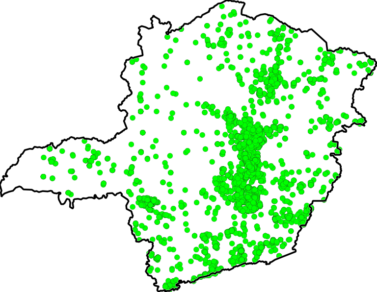 Camada vetorial com a representação dos limites territoriais das regiões metropolitanas existentes em Minas Gerais, e seus respectivos colares metropolitanos