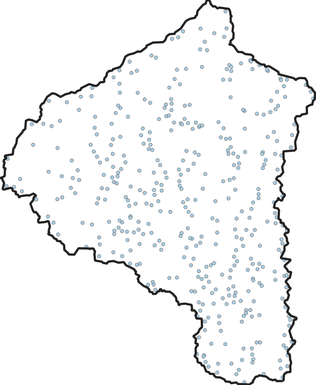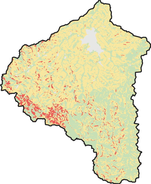 Camada vetorial municipal que resume, para cada município abrangido pelo carste do Grupo Bambuí, o nível de prioridade derivado do ranking contínuo (0–1) produzido pela priorização espacial em grade de 1 km². Para cada polígono municipal calcula-se o percentil 70 dos valores de prioridade das células contidas (métrica escolhida por refletir a concentração de áreas prioritárias e reduzir a influência de valores isolados). O resultado é classificado em Extremamente Alta (EA, 5%), Muito Alta (MA, 10% — inclui EA), Alta (20%) e Relevante (30%), facilitando a comunicação e a tomada de decisão em escala administrativa.