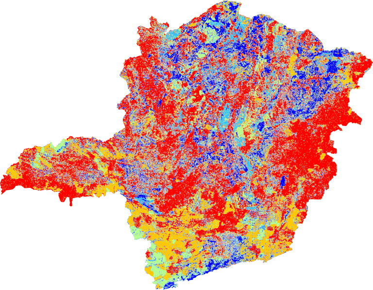 Mapa da textura do solo do Estado de Minas Gerais, elaborado a partir da reinterpretação do mapa de solos elaborado pelo Centro Tecnológico de Minas Gerais (CETEC) em 2007. O recurso integra o componente físico do Zoneamento Ecológico-Econômico de Minas Gerais, elaborado pela Universidade Federal de Lavras (UFLA), em convênio com o Sisema, entre 2005 e 2008.