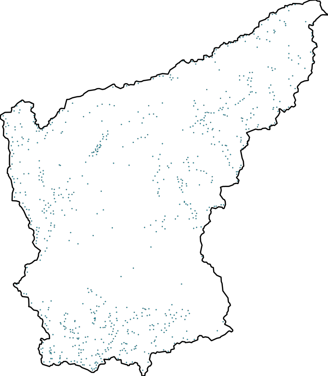 Nascentes extraídas da hidrografia corrigida da sub-bacia hidrográfica do ribeirão das Pedras e dos Córregos do Feijão e da Cruz. O mapeamento integra o Zoneamento Ambiental Produtivo (ZAP) da sub-bacia, elaborado pelo NEPZAP UFVJM em 2023