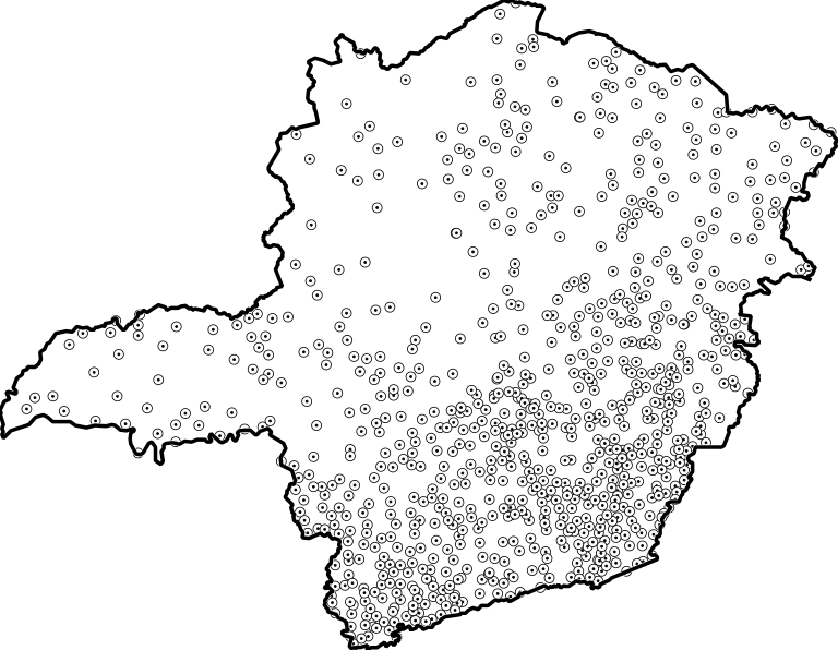 Localização geográfica das sedes municipais de Minas Gerais, identificadas e mapeadas pelo Instituto Brasileiro de Geografia e Estatística (IBGE) a partir dos levantamentos provenientes do Censo Demográfico 2022.
