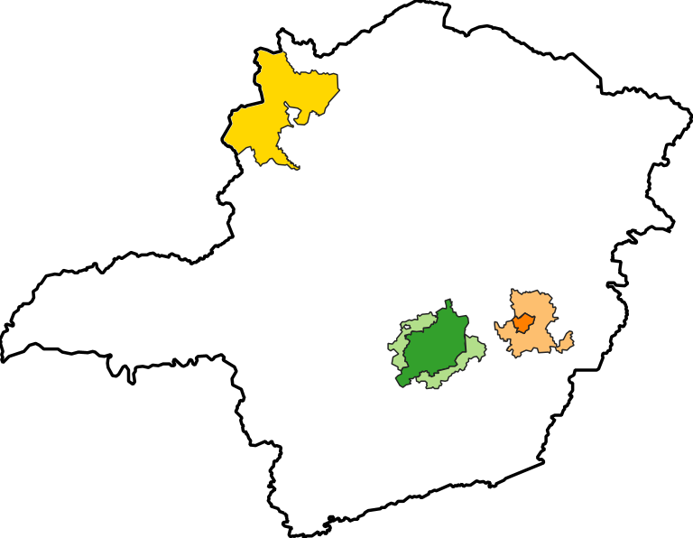 Camada vetorial com a representação dos limites territoriais das regiões metropolitanas existentes em Minas Gerais, e seus respectivos colares metropolitanos